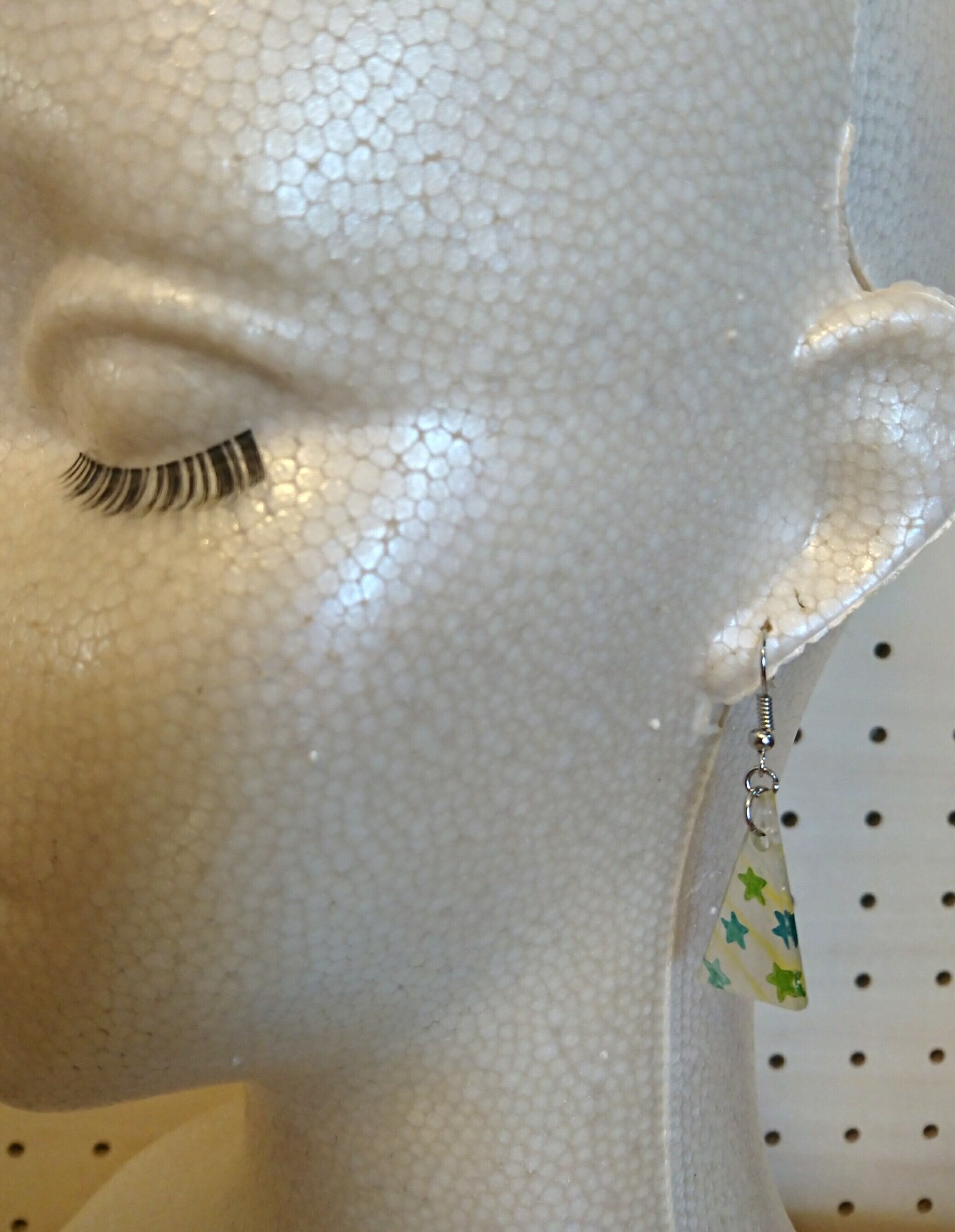 プラバンに消しゴムはんこで柄付けして制作したピアスです。